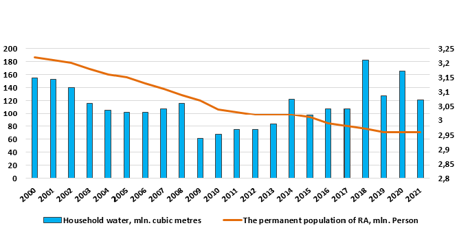 Figure 1 - Development of total freshwater use by households in the Republic of Armenia (2000-2021)