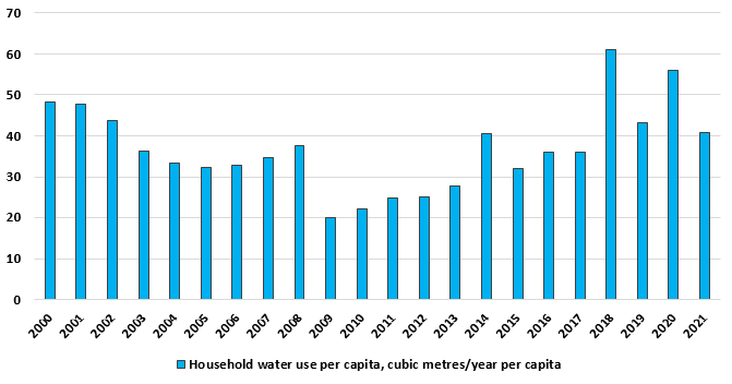 The indicator is important for defining the level of development of the water economy services and the degree of water accessibility to cover all of the household needs of the population. The indicator also helps to identify trends in household water use in a particular country.