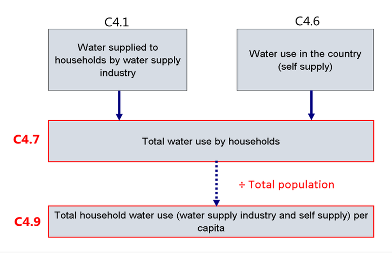 | C4.7 | Total water use by households | million m3/year | =C 4.1 + C 4.6 |